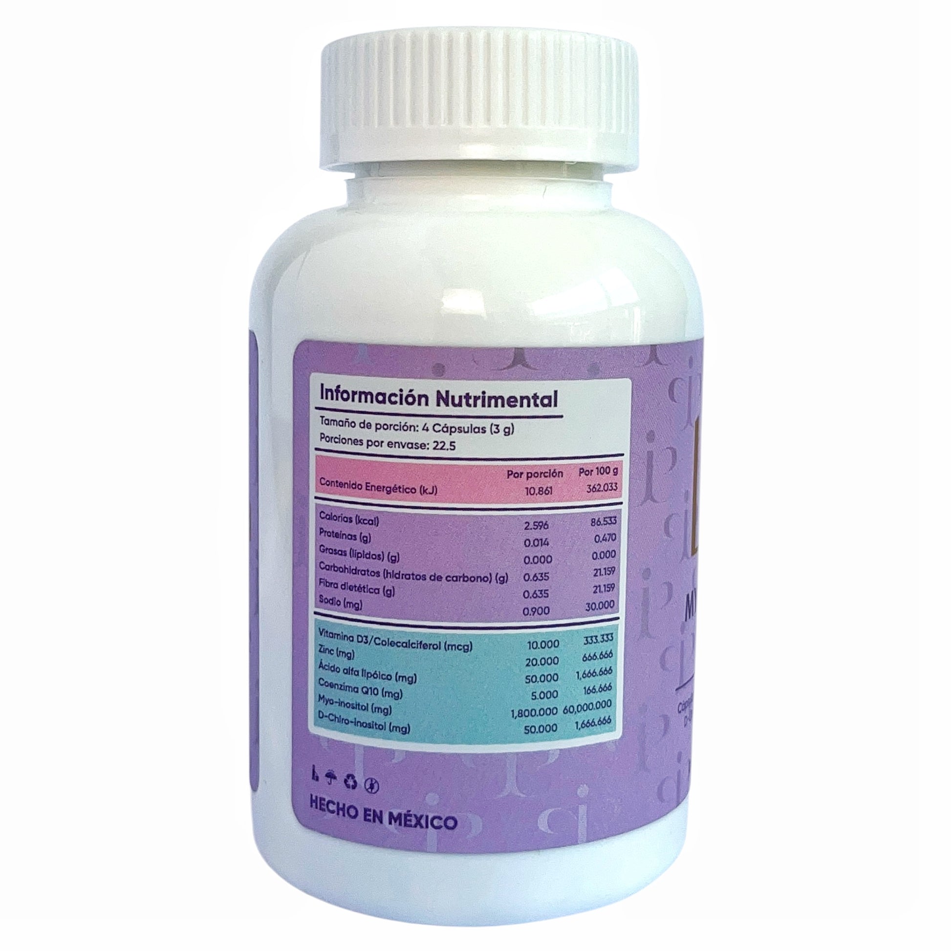 Sinergia con Myo-Inositol para sensibilidad a la insulina y soporte ovulatorio. Contribuye a reducir antojos.